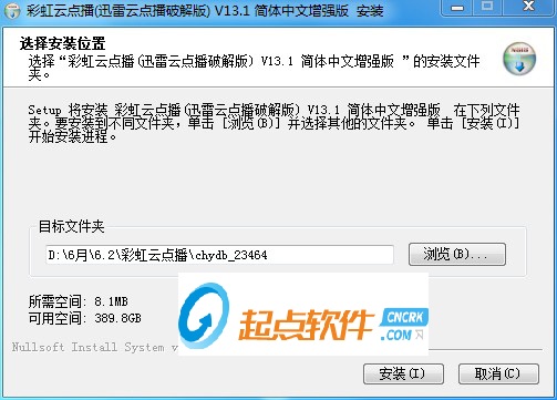 1、下載并解壓彩虹播放器 V14.5 破解版安裝包壓縮包,然后運(yùn)行彩虹云點(diǎn)播(彩虹播放器破解版) exe程序進(jìn)行軟件安裝,彈出界面,進(jìn)入安裝向?qū)Ы缑?,選擇軟件安裝路徑,然后點(diǎn)擊安裝