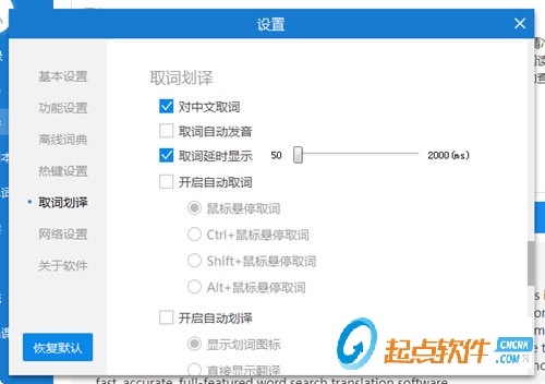 首先你需要在詞霸的設(shè)置中,啟用這個功能,點(diǎn)擊界面右上角的齒輪進(jìn)入設(shè)置界面,然后勾選并設(shè)置劃詞的功能。