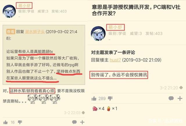 乍一看這本意上是為了《多多自走棋》更好地發(fā)展,但是記性好的網(wǎng)友們找到了一個(gè)截圖。這個(gè)截圖是當(dāng)初巨鳥多多工作室在DOTA2上面發(fā)布《刀塔自走棋》取得了成功之后,他們收到了很多家公司的邀約,其中就包括騰訊。而當(dāng)時(shí)巨鳥多多的一個(gè)工作人員,ID為“萌小蝦”也是在論壇上回復(fù):“絕對(duì)不會(huì)和騰訊合作”。這個(gè)回復(fù)也是讓很多玩家十分震驚,畢竟能拒絕騰訊的邀約實(shí)在是很難。