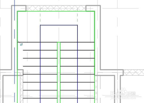 定位線繪制完成之后,雙擊esc鍵退出參照平面繪制模式,開始繪制樓梯,點擊梯段/直線,在視圖中捕捉定位線繪制,繪制完成的樓梯平面如下圖。