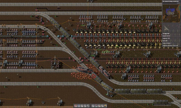 在整個游戲流程中玩家要從“以手擼樹”開始,一直發(fā)展到構(gòu)筑核動力驅(qū)動的復(fù)雜生產(chǎn)鏈。在這個過程中,玩家需要精細地調(diào)整開采——加工——組裝等多個步驟,熟悉每一種生產(chǎn)單元的工作模式,以求達到完美的自動化生產(chǎn),并不斷優(yōu)化生產(chǎn)鏈,追求最高的效率。