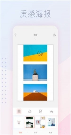 拼圖醬精選app是一個(gè)非常實(shí)用的圖片編輯軟件,頁面布局清新簡單。拼圖醬精選app里面有創(chuàng)意磁貼、長圖拼接、調(diào)整工具等功能,你可以在編輯圖片的時(shí)候,可以制作一個(gè)符合自己心儀的老式貼紙,讓圖片更加豐富飽滿。拼圖醬精選app是一款內(nèi)涵很多精美的模板和高級的編輯工具,可以免費(fèi)使用,幫助你完善你的拼圖模板樣式,調(diào)整圖片的細(xì)節(jié)。