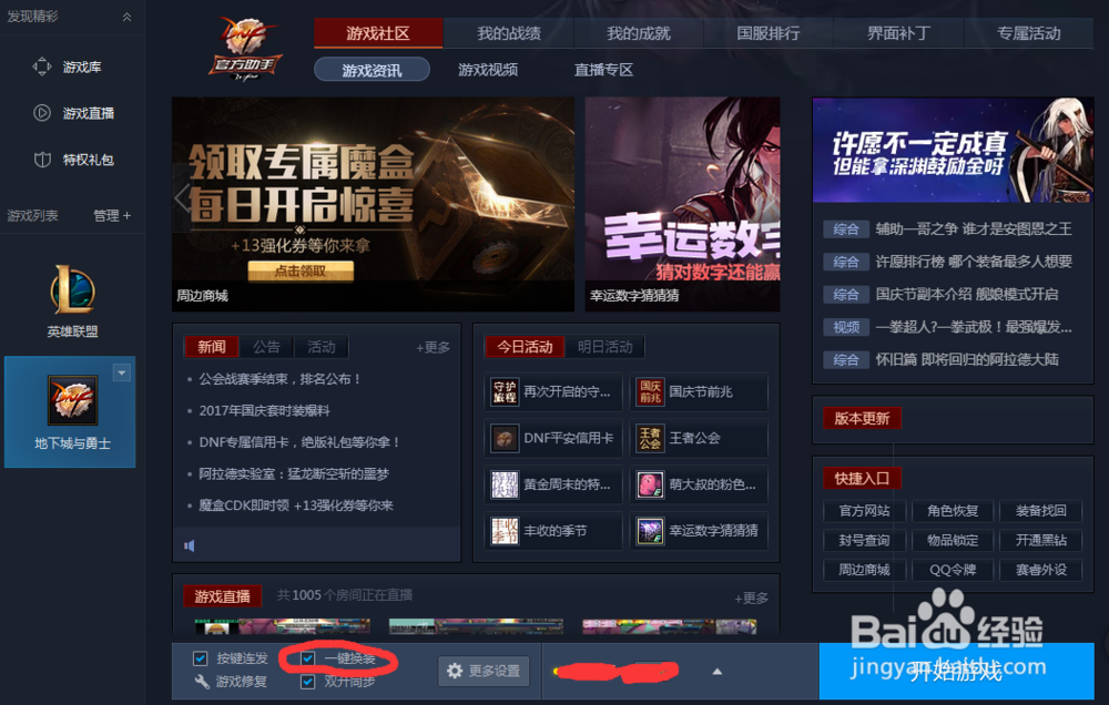 登錄TGP,打開地下城與勇士,即開始游戲之后才可以打開游戲助手