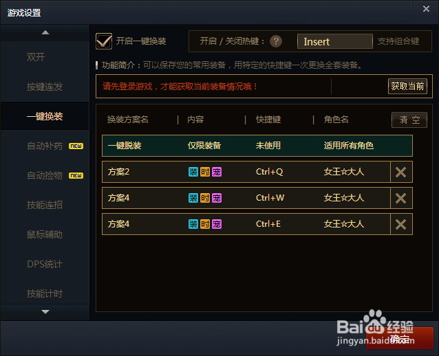 您可以通過助手保存您的常用裝備,使用特定的快捷鍵一次更換全套裝備。