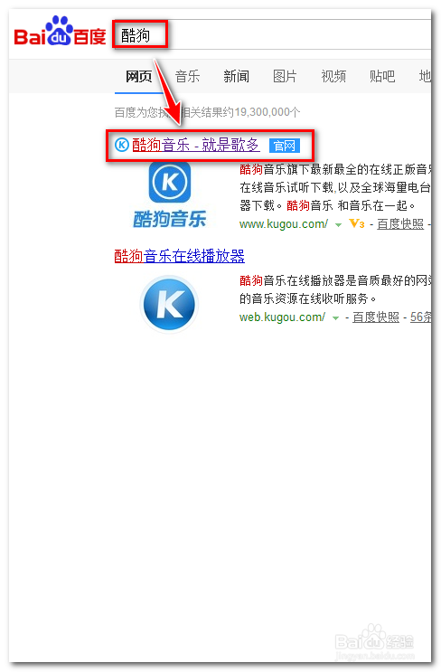 打開360瀏覽器找到百度搜索【酷狗】點(diǎn)擊開【酷狗音樂-就是歌多 官網(wǎng)】