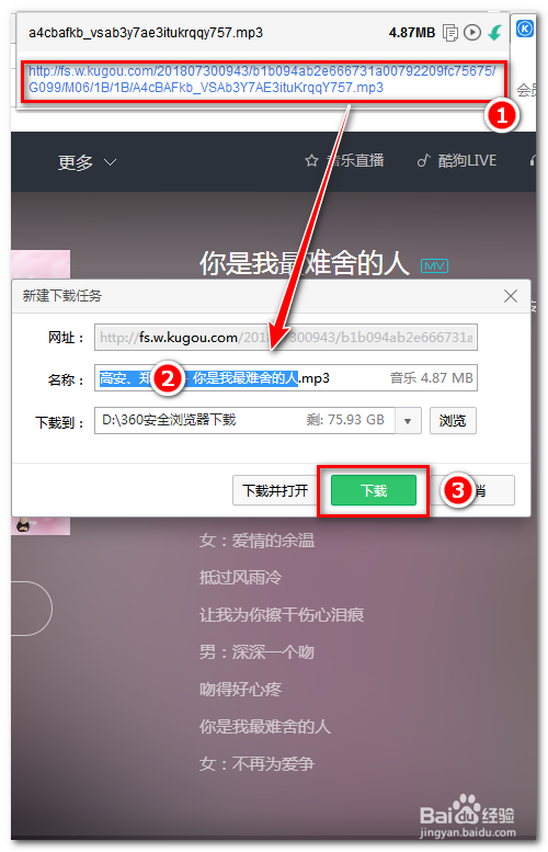 點(diǎn)擊藍(lán)色的網(wǎng)址就彈出下載的對話框,可以把英文的歌曲名字改為中文的歌曲名。然后點(diǎn)擊下載就ok了。如圖: