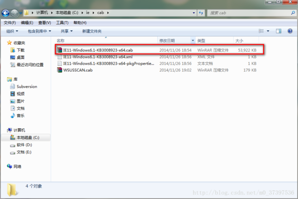 下面我將以ie的插件IE11-Windows6.1-KB3008923-x64.msu安裝為例: