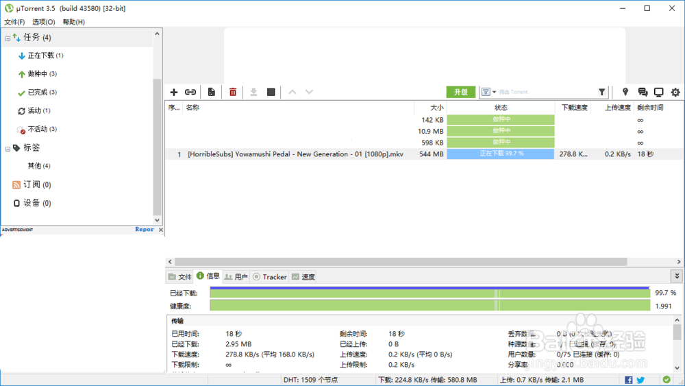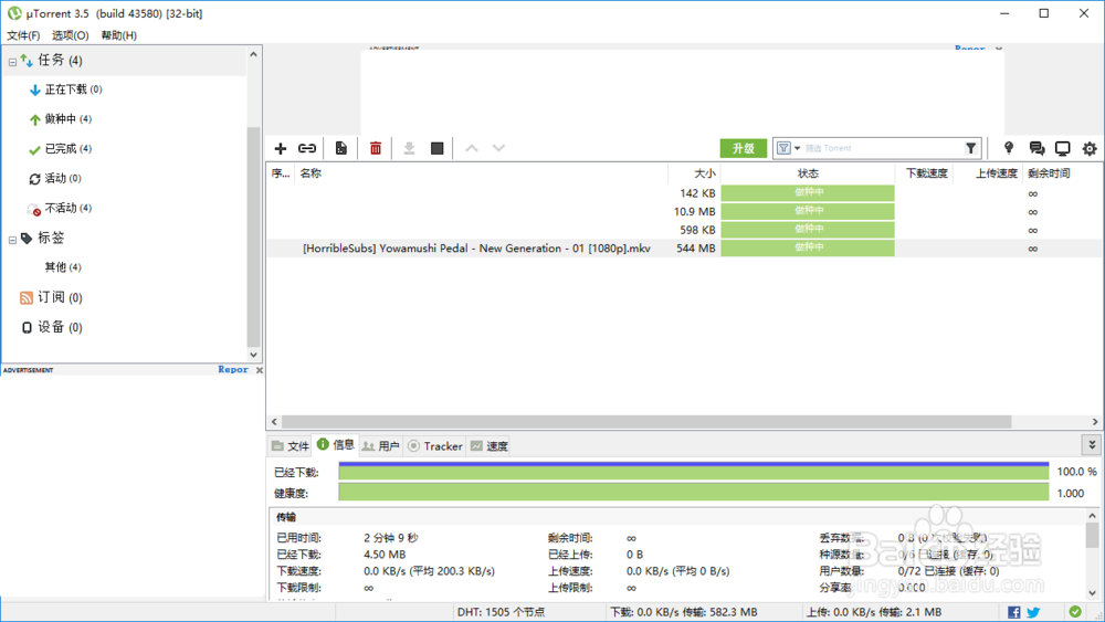 下載完成會(huì)顯示“做種中”,也就是有其他人下載的話你就會(huì)自動(dòng)上傳給別人。