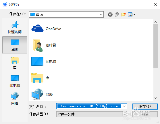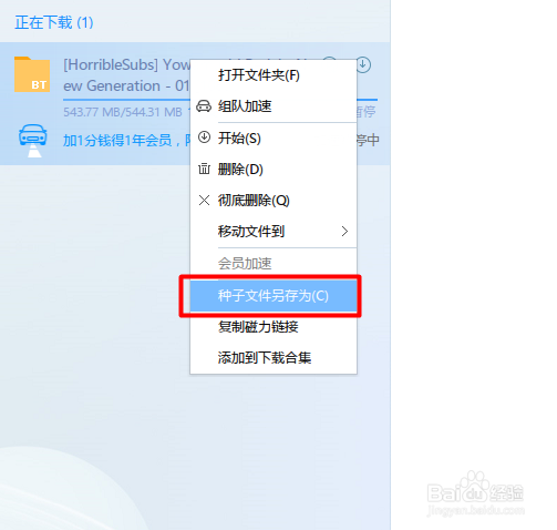 接下來我們需要得到該任務(wù)的種子,同樣右鍵任務(wù),選擇種子文件另存為,這里選擇保存到桌面。