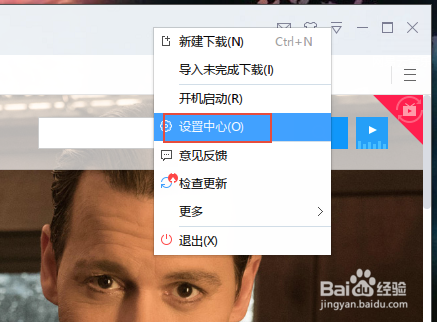 我們都不知道其實(shí)迅雷下載速度也這么快也是有原因的,咱們點(diǎn)擊位于右上角的小三角形,找到咱們的設(shè)置中心,如圖所示!