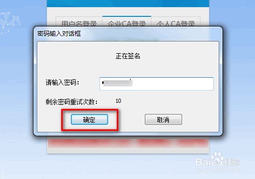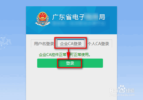 一、廣東電子稅務(wù)局怎么增加購票員?進入電子稅務(wù)局,把CA插在電腦上,點擊【企業(yè)CA登錄】,輸入密碼框,點擊【確定】。