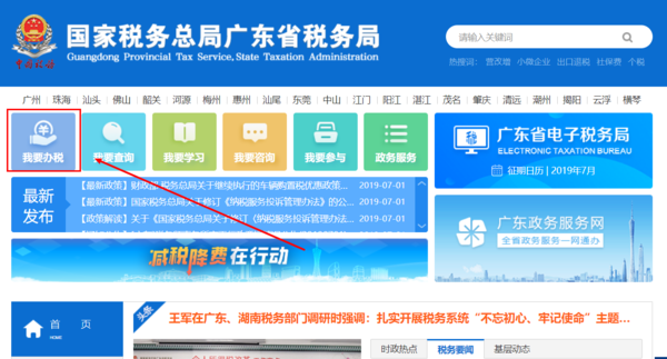 1、進入國家稅務(wù)總局廣東省稅務(wù)局,點擊“我要辦稅”。