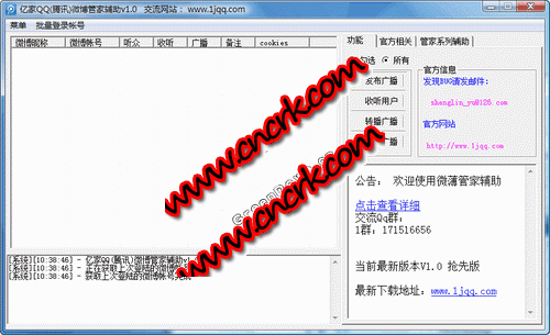 騰訊微博管家輔助可以一鍵發(fā)布微博廣播、批量秒聽用戶、一鍵轉(zhuǎn)播廣播、一鍵點(diǎn)評(píng)廣播。