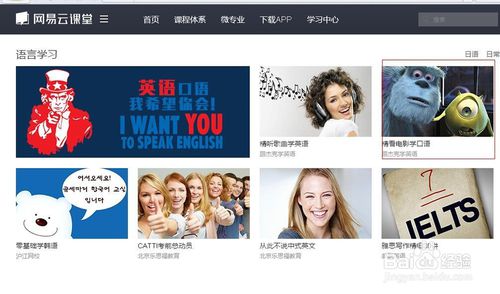1、點擊進入網(wǎng)易云課堂,登錄自己的賬號,比如你想下載精彩電影學口語