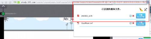 3、這時你可以看到右上角后下載按鈕變成課下載的狀態(tài),單擊一下,下載后綴是flv的文件,點擊保存把名字改一下就ok了。