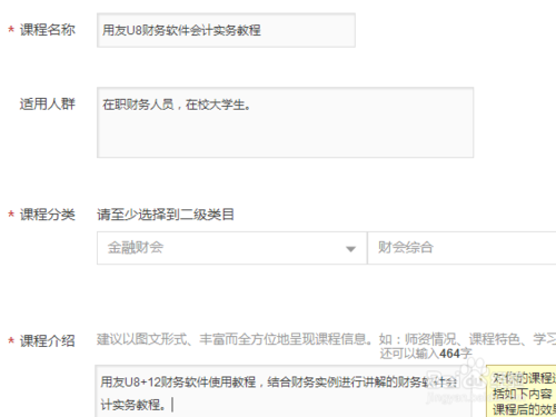 5、基本信息包括:標題、課程對象、課程介紹等等。