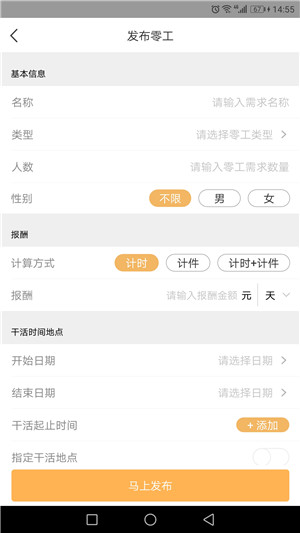 1、找人干活隨時(shí)隨地發(fā)布用工需求:一鍵召喚周邊最靠譜工人,根據(jù)要求自動(dòng)匹配合適技能,多維度依次排列。