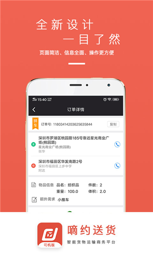 嘀約司機(jī)app是嘀約送貨軟件的司機(jī)端app,是司機(jī)全職、兼職首選物流平臺。打開嘀約司機(jī)app,進(jìn)入首頁一鍵點擊簡單注冊登錄個人賬號,車型多樣,司機(jī)可自主添加多款車輛,訂單實時更新推送給每一位司機(jī)搶單,司機(jī)可自由接單。