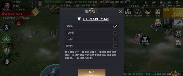 發(fā)動(dòng)集結(jié)攻擊時(shí),領(lǐng)主可以選擇5分鐘、10分鐘、1小時(shí)、8小時(shí)等不同的響應(yīng)時(shí)間。