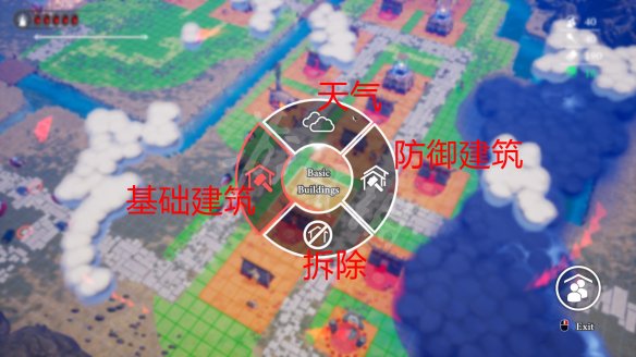 建筑分為三類,基礎(chǔ)建筑,天氣、防御建筑。第四個(gè)選項(xiàng)是拆除建筑,拆除建筑會原價(jià)返回建造建筑時(shí)花費(fèi)的木頭。