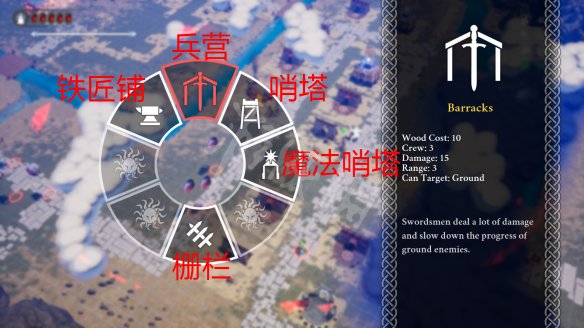 兵營-提供地面火力支持,兵營可以駐扎3名士兵,傷害15,射程3。