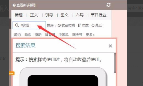 2、然后打開(kāi)135編輯器,接著在左邊的搜索框中輸入“視頻”,選擇一個(gè)自己喜歡的樣式。