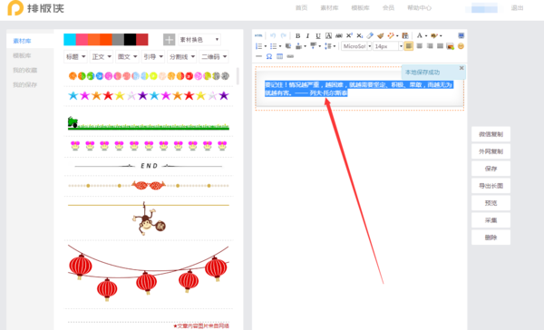 直接復(fù)制粘貼不就行了,這邊都是使用排版?zhèn)b編輯,和135差不多,文字直接復(fù)制粘貼到素材里面 替換一下,從txt記事本里面粘貼進(jìn)去就下來(lái),效果還很好,可以看下圖:
