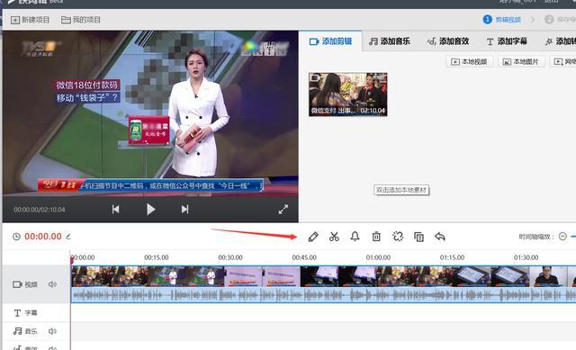 視頻導(dǎo)入后,點(diǎn)擊畫(huà)筆,進(jìn)入視頻的編輯界面,如圖所示: