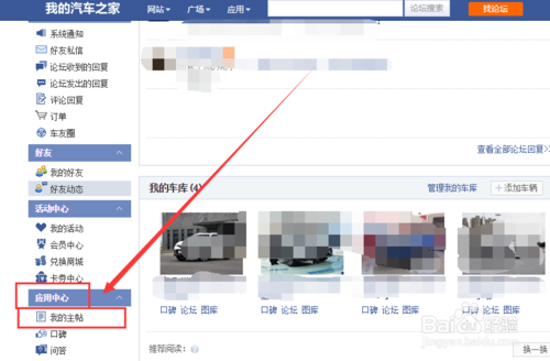 2、進(jìn)到主頁,找到應(yīng)用中心中我的主貼