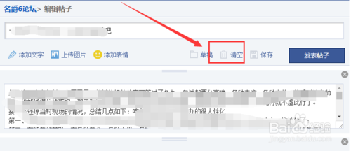 4、彈出編輯帖子界面,選擇清空按鈕將所有信息清空,速度最快。