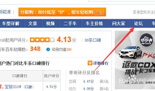 2、打開車型首頁后,在右側(cè)點(diǎn)擊“論壇”字樣。
