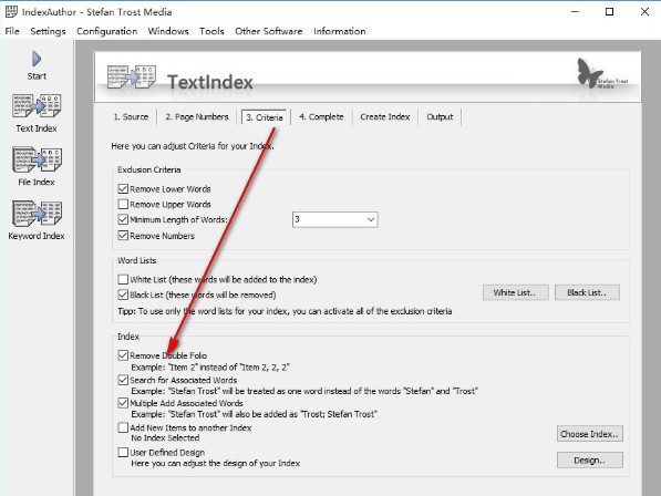 白名單和黑名單:通過定義一個白名單和黑名單,你可以搜索明確的話為你的索引,或者你可以刪除它們。此外,還有一個工具,可以將當(dāng)前索引中的單詞添加到這些列表中的一個,以便下次啟動索引作者時再次使用它們。