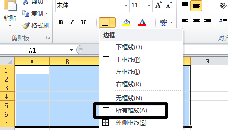 4、之后我們點(diǎn)擊所有框線選項(xiàng),這樣一個(gè)表格就完成了。