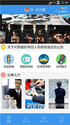 長(zhǎng)沙通是長(zhǎng)沙市公安局基于手機(jī)移動(dòng)平臺(tái),為廣大市民推出的集在線查詢、繳費(fèi)、預(yù)約申請(qǐng)為一體的服務(wù)型平臺(tái)!它為市民們提供在線查詢違章記錄、機(jī)動(dòng)車信息、駕駛證信息,并可在線申請(qǐng)預(yù)約出國境、臺(tái)灣往來大陸、外國人入境等業(yè)務(wù)申請(qǐng)。同時(shí)提供實(shí)時(shí)路況、警務(wù)地圖、最新公告等功能,讓廣大市民了解最新資訊,足不出門,便可掌握長(zhǎng)沙一手信息!