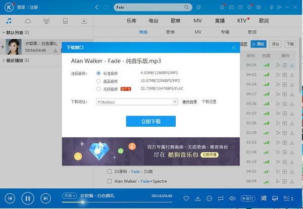 2、酷狗音樂播放器擁有強(qiáng)大的音樂搜索和下載功能,可以邊聽邊下載。