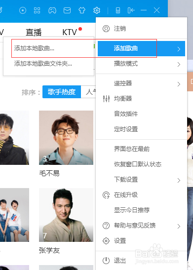可以直接選擇添加歌曲,添加本地歌曲或者是添加電腦文件里的所有歌曲。