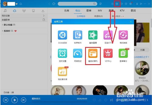 1、首先下載安裝酷狗音樂播放器——安裝完成后,點(diǎn)擊右上方的工具——點(diǎn)擊酷狗收音機(jī)(如果是第一次使用是灰色的,點(diǎn)擊后會(huì)自動(dòng)安裝,再次點(diǎn)擊就可以打開了。)