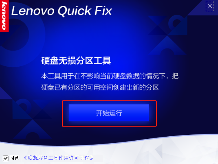 雙擊運行“硬盤無損分區(qū)工具.EXE”,可能出現(xiàn)的用戶賬戶控制提示,請選擇是,如圖:
