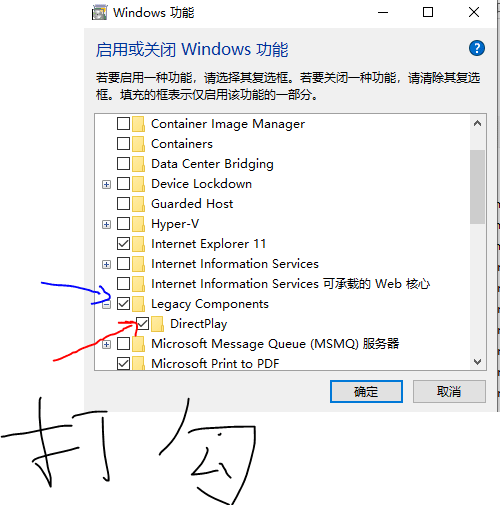 打開--Legacy Components-勾選上--DirectPlay
