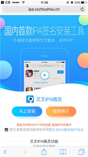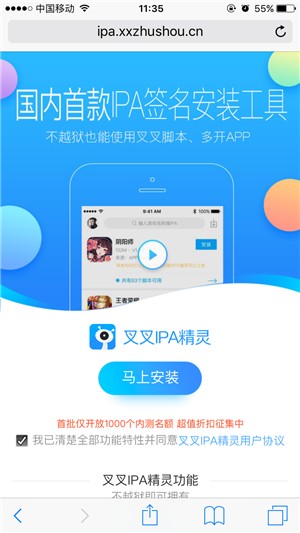 1. 前往ipa.xxzhushou.cn,一鍵安裝頁面。