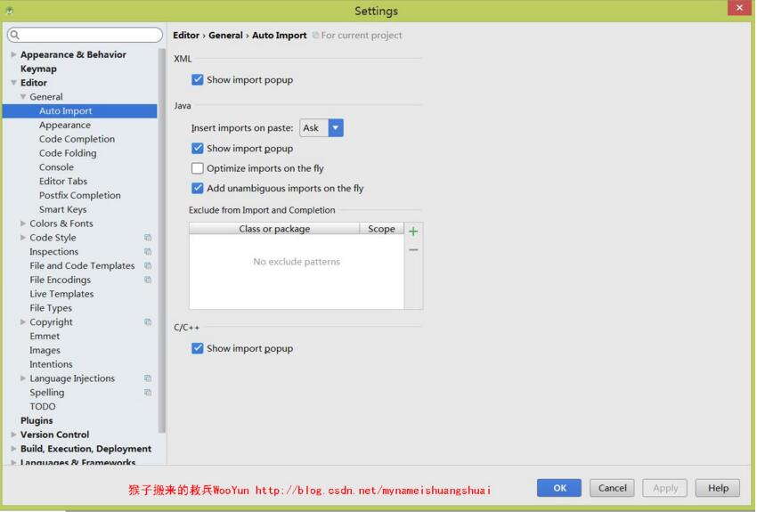 當你從其他地方復制了一段代碼到Android Studio中,默認的Android Studio不會自動導入這段代碼中使用到的類的引用 ,可以如下設置: Settings –> Editor –> Auto Import ,勾選 Add unambiguous improts on the fly 。
