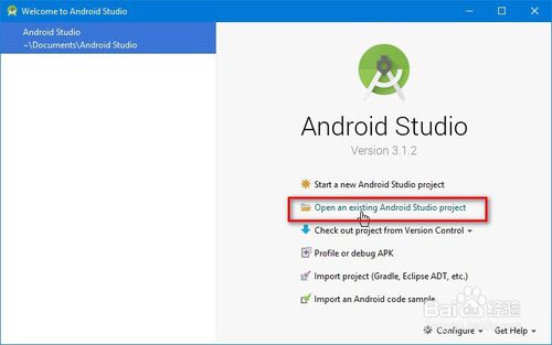 AS在導入項目的時候其實很簡單:在剛開始打開AS的時候,選擇“Open an existing Android Studio project(打開已存在的AS項目)”。