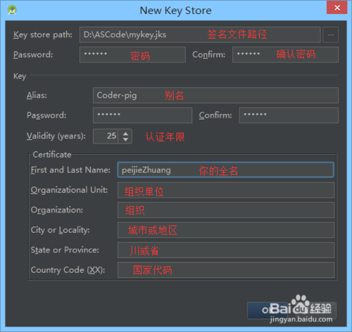 彈出窗口,如果沒有key,就創(chuàng)建一個,有的話就選擇存在的Key,如果你是第一次打包。都是沒有的