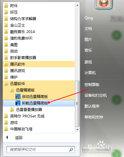 2、接著在程序列表中找到迅雷軟件目錄下,迅雷精簡(jiǎn)版里的“卸載迅雷精簡(jiǎn)版”圖標(biāo),如圖所示