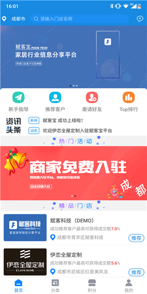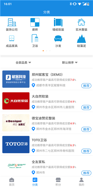 1、邀請好友:會員可以邀請好友一起在賦客寶app平臺上賺取傭金。2、分類:賦客寶app將建材家居行業(yè)內商家分類,會員可根據品類來快速查找相應商家信息。