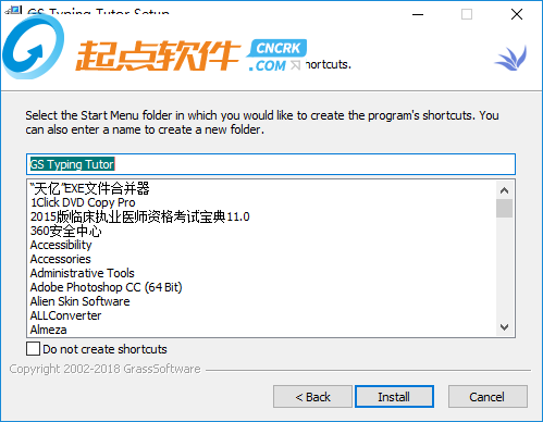 3、你可以設(shè)置軟件的地址C:\Program Files (x86)\GrassSoft\Typing,可以默認(rèn)地址