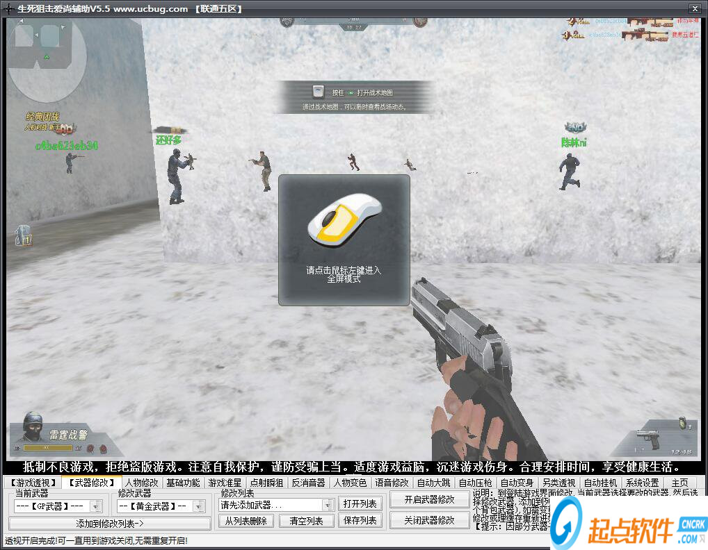 生死狙擊愛尚輔助功能強大,包括了自動大跳、游戲準星、點射瞬狙、自動壓槍、自動變身、反消音器、人物修改、語音修改、墻壁透視、武器修改等等。下蹲更改為Ctrl鍵 (老玩家不習慣Shift下蹲?讓你找回游戲感覺?。?br />游戲準星 (狙擊槍必備功能,連狙也是沖鋒槍?。?br />自動點射 (推薦新手使用,支持 點射 2連發(fā) 3連發(fā) 5連發(fā)等 彈道非常穩(wěn)定?。?br />自動壓槍(反后坐力) (新手開槍慌亂?子彈亂飛?壓搶幫你解決開槍不能精確向下移動的煩惱!)