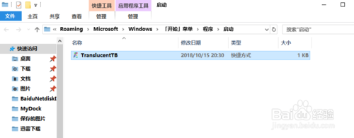 在C:\Users\用戶名\AppData\Roaming\Microsoft\Windows\Start Menu\Programs\Startup文件夾目錄下右擊TranslucentTB快捷方式,選擇屬性