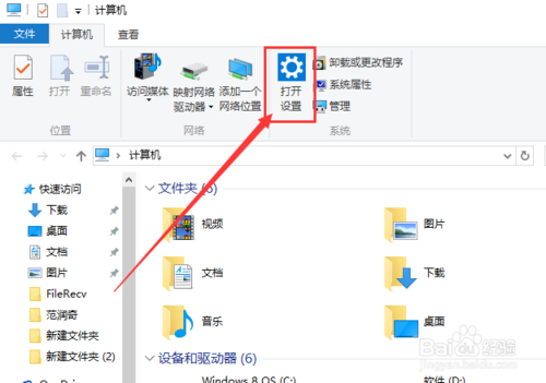 首先,請(qǐng)大家打開Win10系統(tǒng)中的計(jì)算機(jī)應(yīng)用界面,進(jìn)入計(jì)算機(jī)窗口頁面之后,點(diǎn)擊頁面上方的“設(shè)置”按鈕,進(jìn)入Win10系統(tǒng)設(shè)置頁面。