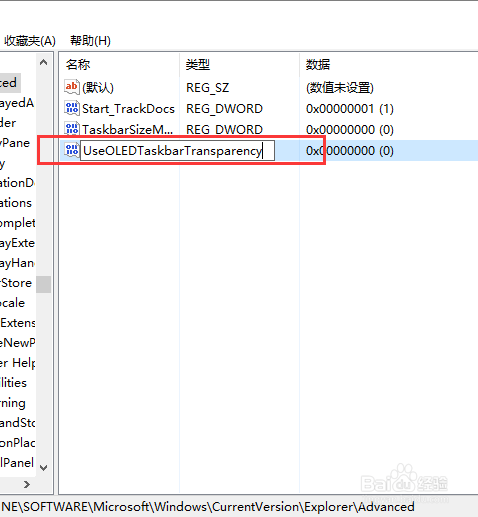 接下來,我們確定將新建立的DWORD(32位)值命名為“UseOLEDTaskbarTransparency”,我們可以對(duì)新建立的鍵值擊右鍵進(jìn)行修改。